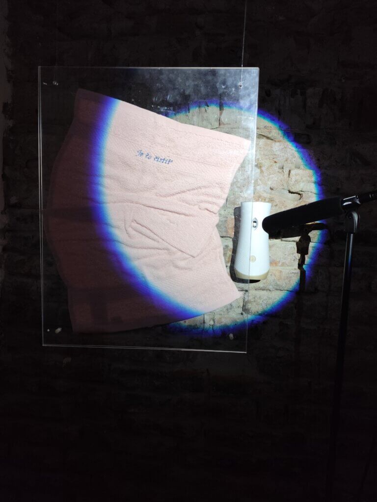 V rámci „progresívnej“ kultúry banalít sa mohli návštevníci „kochať“ obyčajnej utierke s „úderným“ odkazom asi tej upratovačke, čo ju zabudla.