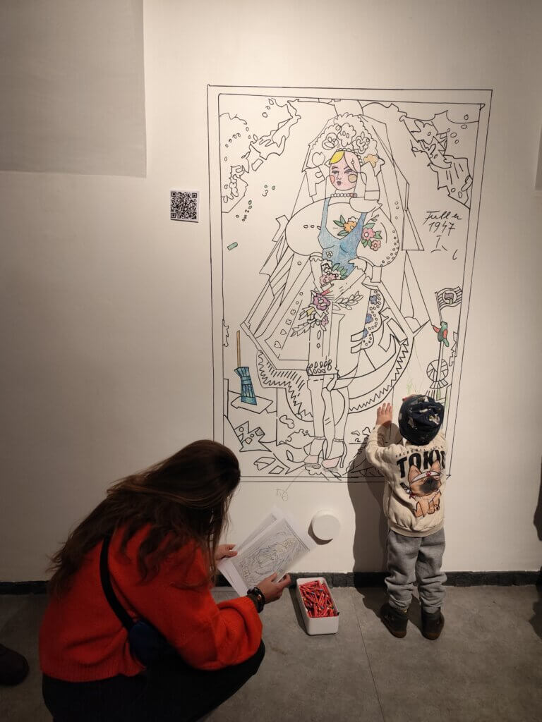 No a najväčším objektom celej výstavy (a viac toho tam naozaj nebolo) bola banálna omaľovánka, ktorú okrem jedného dieťaťa hlbokomyseľne vymaľovávali aj niektorí mládežníci. No, ako ukážka infantilizácie našej mládeže pod patronátom pán Druckera to bolo aspoň aktuálne a výstižné.